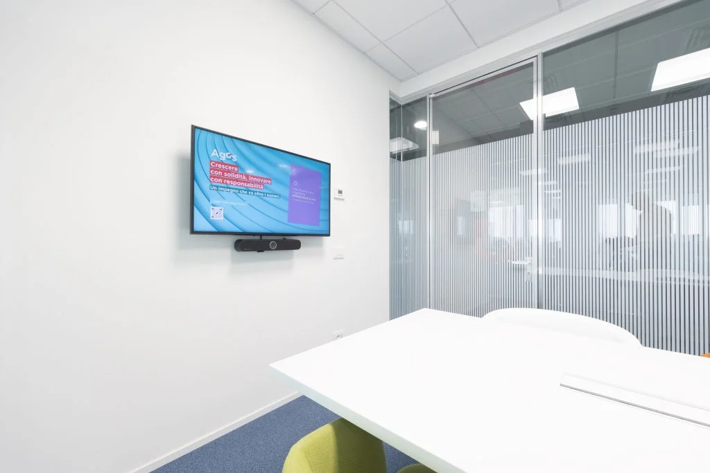 Agos doveva affrontare una serie di criticità tecniche e operative: alte esigenze di intelligibilità del parlato, fondamentale nelle conversazioni da remoto; difficoltà di utilizzo delle tecnologie precedenti, poco user‑friendly; microfoni e videocamere non adeguati per sale affacciate su open space con rumore di fondo; pareti in vetro, che ostacolano la resa audio; bisogno di un sistema compatto, semplice da gestire e integrabile nell’ecosistema IT esistente.